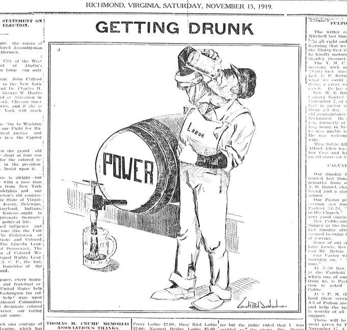 The Taft Hartley Act of 1947 outlawed labor tactics like solidarity strikes and the maintenance of closed shops. It was vehemently opposed by President Truman, but became law over his veto because of its overwhelming, bipartisan support in Congress. The fact that Democrats, who had leaned so heavily on organized labor under Roosevelt, could make this strategic miscalculation is easy to chalk up to Cold War paranoia about socialist workers’ unions. But the regional divide gets at something perhaps more interesting.